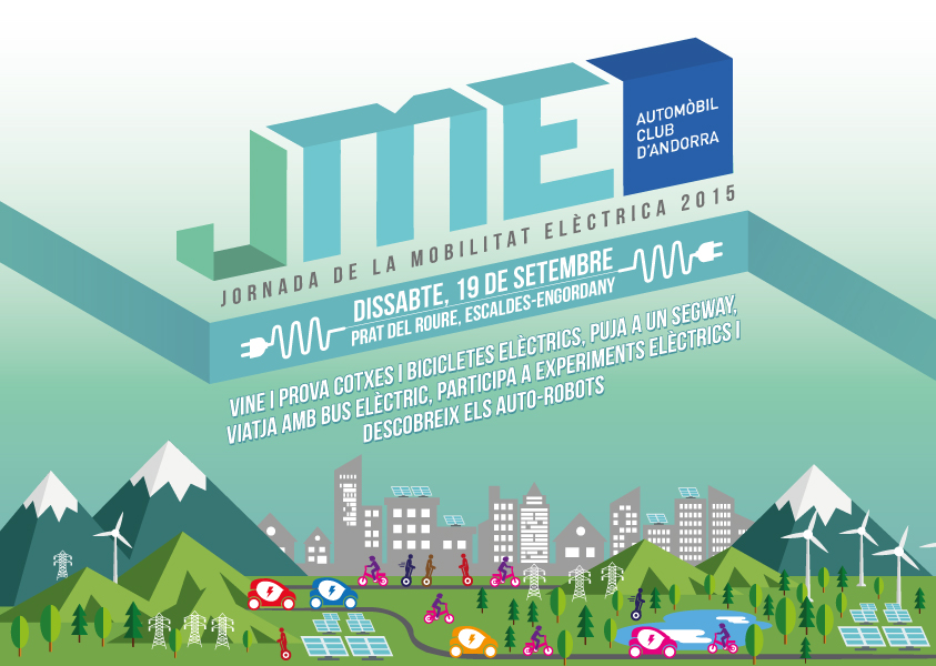 La segona Jornada de la Mobilitat Elèctrica (JME15), organitzada per l'Automòbil Club d'Andorra i patrocinada per FEDA, demostra que l'alternativa als vehicles fòssils ja és factible i viable. La fira, que es durà a terme dissabte 19 de setembre al Prat del Roure d'Escaldes-Engordany, aglutina bona part de l'oferta de vehicles elèctrics que ja es pot adquirir actualment a Andorra entre cotxes, segways, bicicletes i motos. També hi haurà un bus elèctric. Pel que fa als cotxes hi haurà els models següents a disposició dels visitants per fer-hi proves de conducció: Smart Fortwo, Kia Soul, Mercedes Classe B, Mitsubishi Outlander, Citroen C0 i Citroen Berlingo. La JME15, per tant, serà una realitat gràcies al suport del comú d'Escaldes-Engordany i la col·laboració de Pyrénées Andorra, Becier Vehicles, Andorobots, Electric Motion, Volta'l Andorra Segway Tours, Pensa en ciència, Anem Elèctric i Excursions del Pirineu. Andorra 1 n'és l'emissora oficial.