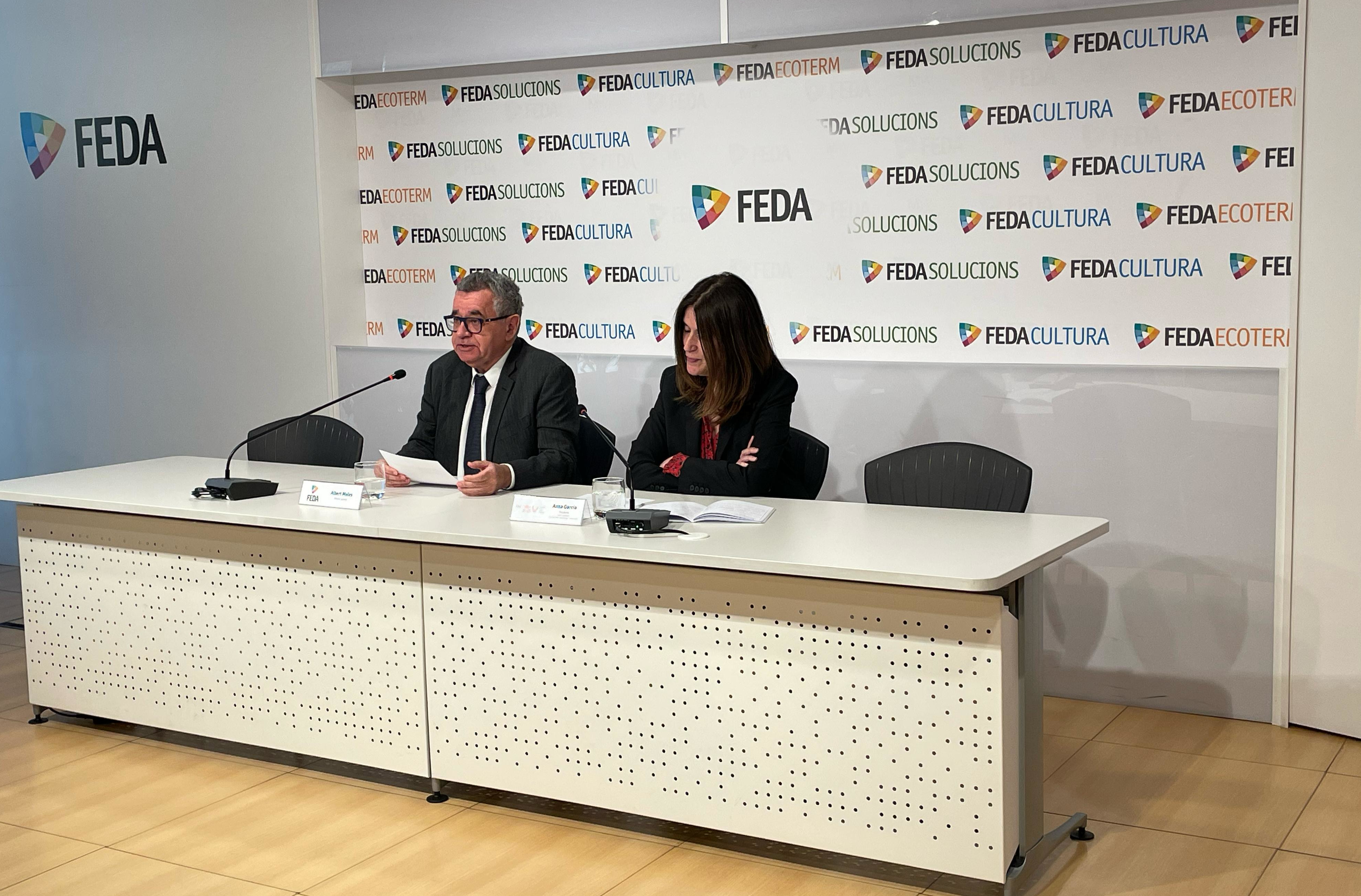 El director general de FEDA, Albert Moles, i la presidenta del Comitè Organitzador dels JPEE, Anna Garcia.