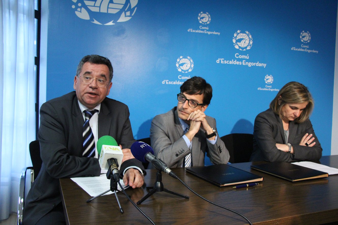 El president del Consell d'Administració de FEDA, Jordi Cinca, i la cònsol major d'Escaldes-Engordany, Trini Marín, han estat els encarregats de signar el conveni de col·laboració per tirar endavant conjuntament l'estudi dels llocs de la parròquia més adequats per desenvolupar xarxes de calor amb aigua calenta.