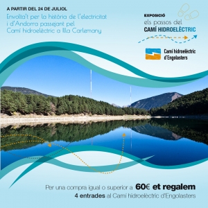 Paral·lelament a l’exposició “Els passos del camí hidroelèctric”, el centre comercial illa Carlemany obsequiarà cada compra superior a 60 euros amb quatre entrades al Camí hidroelèctric d’Engolasters i quatre entrades més al MW Museu de l’Electricitat.