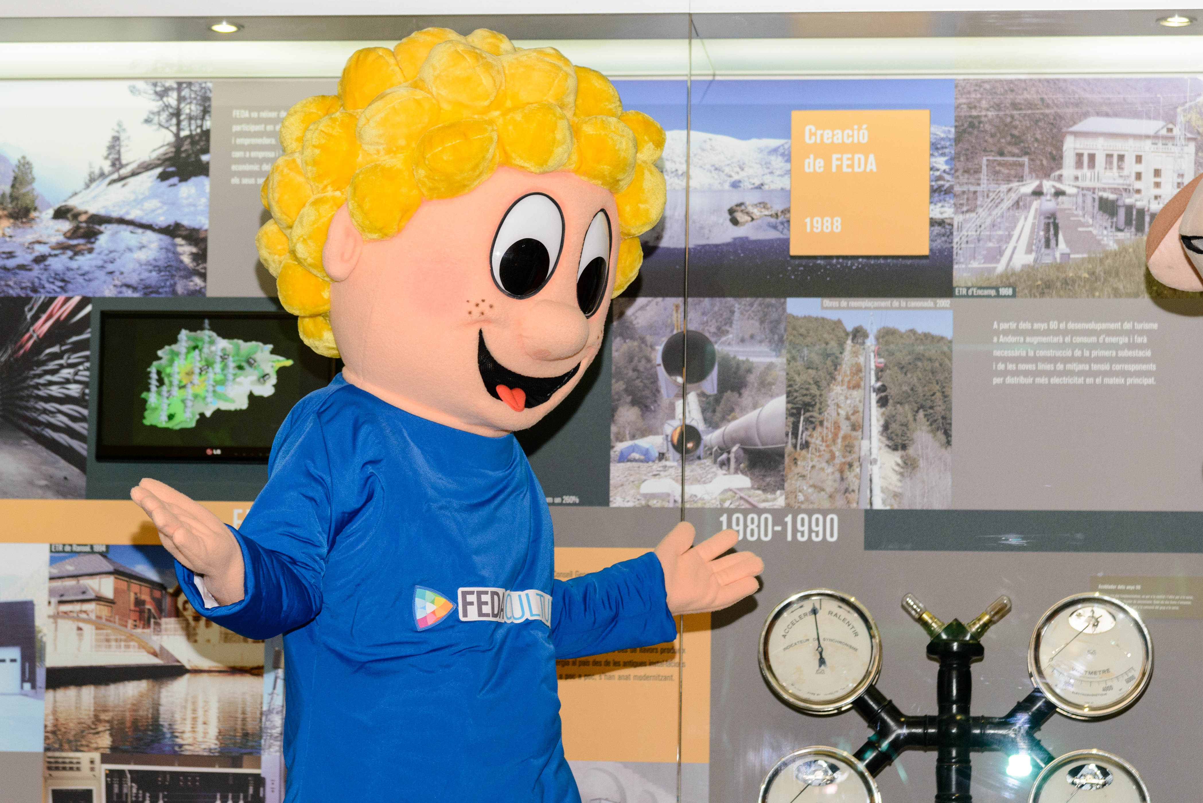 L’Andi, el company d’aventures de la Violeta i el Piolet, ha estat l’encarregat de presentar l’acte i donar la benvinguda al nou personatge de FEDACULTURA, el Pau Pampalluga, i la que serà la seva companya en educar tot els nens del país en termes d’estalvi i seguretat energètica, la Martina.