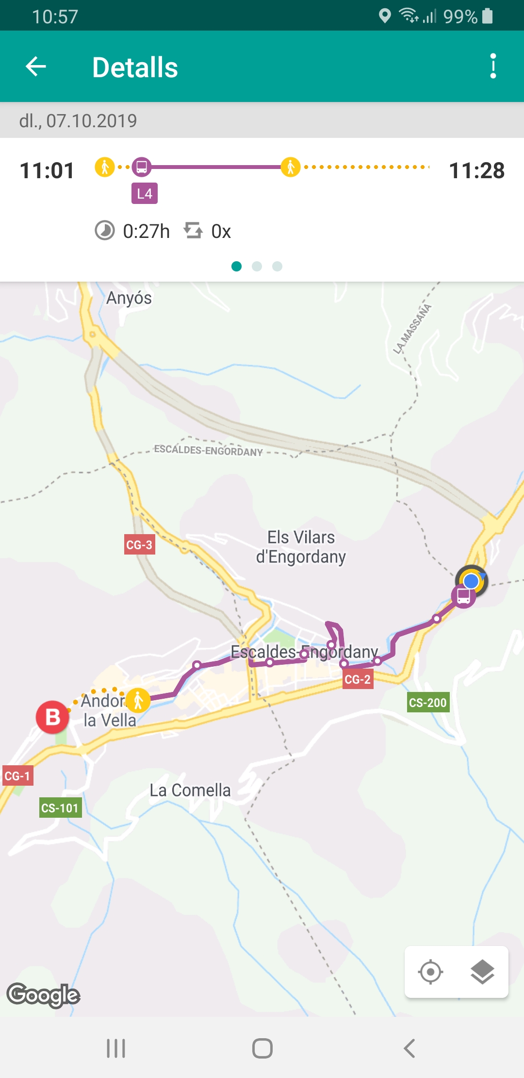 En aquesta primera fase, l’aplicació està orientada específicament als usuaris del transport públic, ja que és el primer servei que s’ha incorporat a la plataforma. Actualment es pot consultar el recorregut més adient per anar d’un punt a un altre dins del Principat fent servir les línies de transport públic nacionals. Així mateix, l’aplicació informa de l’horari previst d’arribada de l’autobús i del temps que es triga a fer el trajecte.
